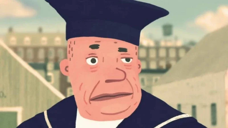 The fish in the opening sequence is given a simple rising violin part, which stands for the moving element, the sea. Furthermore, the boats are followed by a shanty-like melody, with a crescendo towards the explosives. A relatively long pause builds anticipation towards the explosion which is followed by a repetitive theme where the sailor is floating in water above the city.